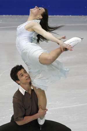 Canada's Tessa Virtue and Scott Moir perform during the ice dancing free dance programme at the World Figure Skating Championships in Gothenburg March 21, 2008. [Agencies]