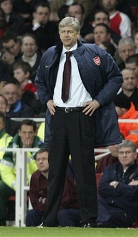 Arsenal's manager Arsene Wenger watches his team during their Champions League quarter final first leg soccer match against Liverpool at Arsenal's Emirates Stadium in London,Wednesday, April 2, 2008. [Agencies]