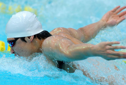 China men's 200m butterfly star Wu Peng shown in this file photo and three-time women's breaststroke champ Qi Hui are expected to win medals at the Beijing Olympics. [Xinhua]