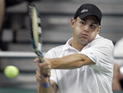 Andy Roddick returns a shot during his Davis Cup tennis quarterfinals match against France's Paul-Henri Mathieu in Winston-Salem, N.C., Sunday, April 13, 2008. [Agencies]