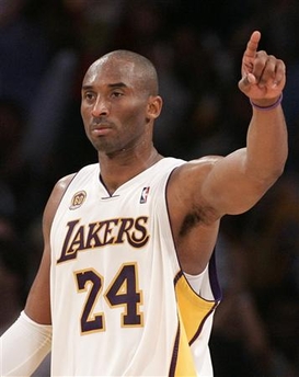 Los Angeles Lakers' Kobe Bryant gestures during their win against Utah Jazz in Game 1 of their NBA basketball playoff series in Los Angeles May 4, 2008. [Agencies]