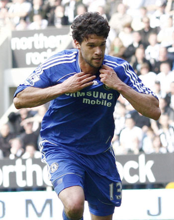 Chelsea's Michael Ballack celebrates after scoring during their English Premier League soccer match against Newcastle United in Newcastle, northern England May 5, 2008. [Agencies]