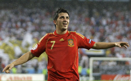 Spain's David Villa celebrates his goal during their Group D Euro 2008 soccer match against Russia at the Tivoli Neu Stadium in Innsbruck, June 10, 2008. [Agencies]