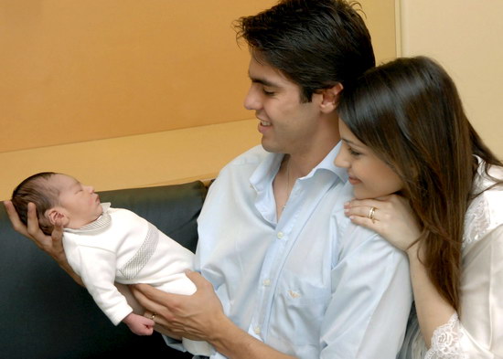 In this photo released by Brazilian soccer player Ricardo Izecson dos Santos Leite, known as Kaka, he is seen with wife Caroline and son Luca, in Sao Paulo, Tuesday, June 10, 2008. Caroline Celico Leite gave birth to Luca at 1:05 a.m, local time, the hospital said in a statement, adding the baby weighed 3.6 kilograms (7.9 pounds) and that 'mother and child are fine.' [Agencies]