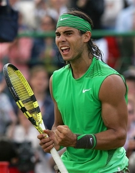 It was the French Open champion's third win in the last three tournaments over the second-seeded Djokovic, following semifinal victories in Hamburg and at Roland Garros. Andres Gimeno was the last Spaniard to win on grass, at Eastbourne in 1972. Nadal is also the first player to win at Roland Garros and Queen's Club in the same year since Ilie Nastase in 1973. "This week was amazing for me," Nadal said. The win should give Nadal a confidence boost ahead of Wimbledon, particularly after his resounding straight-sets win over No. 1 Roger Federer in the French Open final. "Wimbledon is (a) very, very important tournament, and the motivation is 100 percent," Nadal said. "Doesn't matter if I am tired mentally. Physically is a little bit more important, but I think physically I'm fine." Federer, who has won the last five Wimbledon crowns, lost to Djokovic in this year's Australian Open semifinals. The Swiss earned his fifth title at Halle, Germany, earlier Sunday to extend his streak on grass to 59 wins. Early on, Djokovic threatened to sweep the top-seeded Nadal aside in the same manner as his 6-1, 6-0 demolition of David Nalbandian in the semifinals. Djokovic survived a break point in the opening game and then took a 2-0 lead on his fourth break point when he forced a forehand error from Nadal. The Serb earned a break point for a 4-0 lead, but Nadal struck a cross-court forehand winner and went on to break Djokovic in the fifth game. Djokovic had another opportunity in the tiebreaker, leading 6-5 when a forehand from Nadal clipped the net cord and landed wide. Nadal leveled at 6-6 with a forehand winner, and two points later Djokovic netted a return to concede the set. Nadal took advantage of Djokovic's frustration by breaking to lead 2-0 in the second set, but Djokovic immediately broke back before Nadal received treatment for blisters on his racket hand. Both players had opportunities late in the set. Nadal dropped his serve at love to leave Djokovic serving for the set, but the Spaniard won the final three games of the match, closing out with an easy volley at the net. Djokovic was pleased with his performance — especially since he has been playing on grass only three years. "Well, I tried. It was a great match," he said. "It was a great atmosphere. It's been a terrific week." |