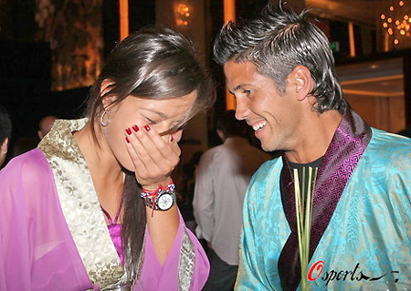 Tennis star Ana Ivanovic of Serbia (L), dressed in Chinese- style robes from the Han dynasty (221 BC-AD 220), smiles during the official reception of the 2008 China Open at the Shangri-La Hotel, September 23, 2008, Beijing, China. [Osports.com]
