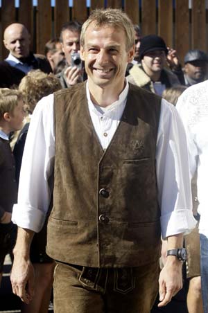 Updated: 2008-10-05 22:15 ![]() Bayern Munich's coach Juergen Klinsmann arrives for a visit at the world biggest beer festival, the Oktoberfest in Munich October 5, 2008. Millions of beer drinkers from around the world come to the Bavarian capital Munich for the world's biggest and most famous beer festival, the Oktoberfest which lasts till October 5. [Agencies]