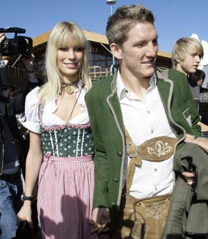 Updated: 2008-10-05 22:15 ![]() Bayern Munich's Bastian Schweinsteiger and his partner Sarah Brandner arrive for a visit at the world biggest beer festival, the Oktoberfest in Munich October 5, 2008. Millions of beer drinkers from around the world come to the Bavarian capital Munich for the world's biggest and most famous beer festival, the Oktoberfest which lasts till October 5. [Agencies]