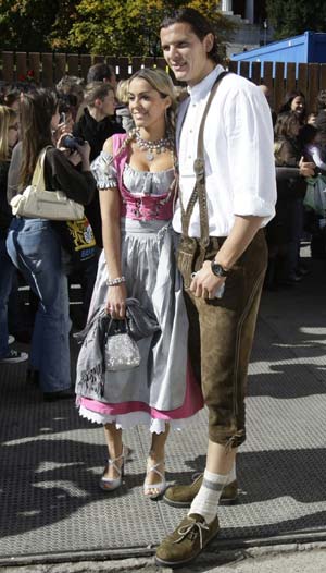 Updated: 2008-10-05 22:15 ![]() Bayern Munich's Daniel van Buyten arrives with his girlfriend Celine for a visit at the world biggest beer festival, the Oktoberfest in Munich October 5, 2008. Millions of beer drinkers from around the world come to the Bavarian capital Munich for the world's biggest and most famous beer festival, the Oktoberfest which lasts till October 5. [Agencies]