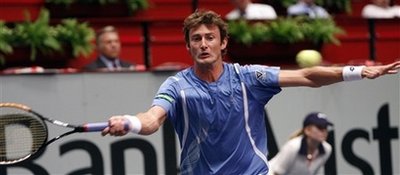 Although Karlovic added a further 17 aces to the 848 he had already fired this season, the rest of his game could not match the standard shown by his Spanish opponent. Ferrero also served so well that Karlovic failed to make many of his returns, he struck some fine groundstrokes, and hit several winners off the intimidating Karlovic serve. A break for 2-1 when Ferrero hit an impressive forehand winner down the line while on the run was enough to decide the opening set, although the Spaniard had to fight off a break point to hold for 4-2 and another as he served for the set. After Karlovic survived two break points to hold for 1-0 in the second set games went with serve until the tiebreak, won with a mini-break on the first point. Fifth seeded Spaniard Fernando Verdasco overcame Romanian qualifier Victor Crivoi 6-4, 6-4, and he will next play Guillermo Canas of Argentina, who earned a welcome 7-6 (7/2) 6-3 victory over Italy's Andreas Seppi. Czech qualifier Jan Hernych edged past Roko Karanusic 4-6, 6-4, 7-6 (7/5) to set up a second round clash with top seed Stanislas Wawrinka, and there were also victories for Spaniards Carlos Moya and Feliciano Lopez. Moya defeated Germany's Michael Berrer 7-6 (7/5) 7-6 (8/6), and Lopez overcame Agustin Calleri of Argentina 7-6 (7/2) 7-6 (7/4). Top seed Wawrinka, second seed Fernando Gonzalez of Chile and Argentine third seed Juan Martin del Potro this week all have the chance to move into the eighth spot in the Race for the Tennis Masters Cup. The top eight players will compete in the season-ending event in Shanghai, which takes place between Nov 9-16. Less than 100 points separate current Race number eight James Blake and 22nd-placed Radek Stepanek. Blake surrendered his opportunity to solidify his position by withdrawing from Vienna for personal reasons.