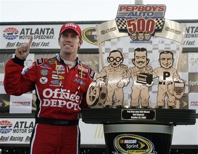 Updated: 2008-10-27 09:58 ATLANTA - Carl Edwards won his seventh race of the season at Atlanta Motor Speedway on Sunday but points leader Jimmie Johnson increased his lead in his quest for a third consecutive NASCAR championship.