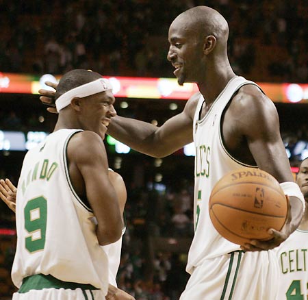 Updated: 2008-10-29 13:41 BOSTON - The Boston Celtics opened the defence of their NBA title with a 90-85 win over the Cleveland Cavaliers on Tuesday. The Celtics celebrated last season's 17th NBA title by raising the championship banner to the rafters and were then presented with their winner's rings in a pre-game ceremony. Forward Paul Pierce, who has played his entire 10-season career with the team, was presented with the banner by several former Celtics' players. He then helped his side overcome a seven-point deficit at halftime to lead all scorers with 27 points. LeBron James led the Cavaliers with 22 points. |