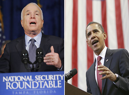 On the eve of the election, the two presidential candidates were interviewed via satellite by ESPN's Chris Berman. The taped interviews aired during halftime of game between the Washington Redskins and the Pittsburgh Steelers. Both candidates were asked to name one thing they would change in sports. "I think it is about time that we had playoffs in college football. I'm fed up with these computer rankings and this and that and the other," Obama said. "Get eight teams -- the top eight teams right at the end. You got a playoff. Decide on a National Champion." College football uses a Bowl Championship Series system, commonly known as BCS, that is based on computer rankings. McCain said he would "take significant action to prevent the spread and use of performance-enhancing substances. I think it's a game we're going to be in for a long time. What I mean by that is there is somebody in a laboratory right now trying to develop some type of substance that can't be detected and we've got to stay ahead of it. It's not good for the athletes. It's not good for the sports. It's very bad for those who don't do it, and I think it can attack the very integrity of all sports going all the way down to high school." Asked what was the best piece of advice he had received from the sports world, Obama said his high school basketball coach, when the young Obama rebelled against him, said, "'Look, this is not about you, this is about the team.' It took me awhile to understand … but that's how I've approached the work I've done in politics since. If you stay focused outside yourself, you end up doing a better job." In answer to the same question, McCain said he drew a lesson from a high school coach who also was a literature teacher. "The guy was my inspiration then and is my inspiration to this day," McCain said. "The lesson he taught me was you always have to do the honorable thing, even if no one knows, because you'll know." Obama had another sports encounter Monday when he recognized a familiar face while stopping by a local campaign office in Charlotte, N.C. "It's M.L. Carr!" Obama exclaimed, clearly excited to spot the former Boston Celtics' star. "The next president, the next president," said Carr, who lives in Boston but said he was in Charlotte for a visit and heard about Obama's stop. |