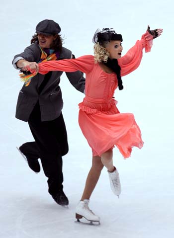 Oksana Domnina and Maxim Shabalin of Russia take part in the original dance competition at the Cup of China, which is part of the ISU Grand Prix of Figure Skating Series, at the Beijing Capital Gymnasium November 7, 2008.[Agencies]