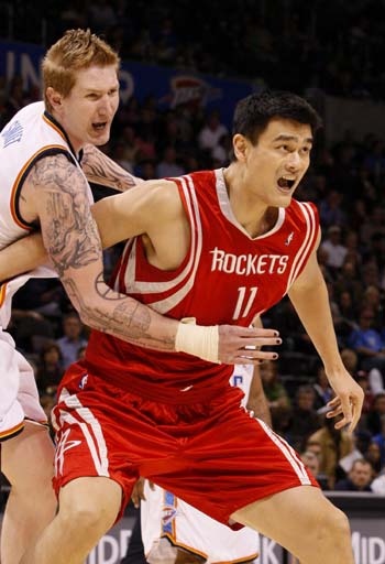 Luis Scola led Houston (7-4) with 23 points while Yao Ming added 19 points and 12 rebounds, but the Rockets seemed more concerned about McGrady's injury than they were about beating the struggling Thunder (1-10), losers of eight straight games. McGrady left the game in the first minute of the second half after aggravating his surgically repaired left knee, which has troubled him in recent seasons. "Tonight I went back to square one, even before surgery, is how my knee is feeling right now," McGrady told reporters. "My game is really based on athleticism and that's something that I don't have right now. "It's sharp pain. It almost just seems like I never had surgery. I'm feeling the same pain." McGrady, who underwent the surgery in the off-season, did not go to the locker room but remained on the bench for the rest of the game after being helped off the court by team trainers. He will have an MRI scan on Tuesday. Ron Artest added 17 points and 11 rebounds for the Rockets but also picked up an injury, leaving the floor in the final minute clutching his right ankle and he was still limping after the game. "People sprain their ankles all the time," Artest said. "It's not a big deal." Yao also left the game early after making a hook shot with 3:29 to play which put Houston 94-78 ahead. He appeared in some pain after making the shot and joined McGrady on the bench, but told reporters he did not think it was anything serious. Kevin Durant had 29 points to lead the Thunder, who moved to Oklahoma City from Seattle this season. The Thunder franchise has now lost nine straight and 15 of 16 games to Houston. |