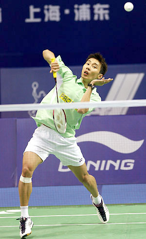 Lee Chong Wei of Malaysia returns the shuttle during the first round match against China's Qiu Yanbo in the men's singles of Li Ning China Open Badminton Super Series 2008 in Shanghai, China, Nov. 19, 2008. Lee won 2-1(8-21, 21-14, 21-16). [Xinhua]