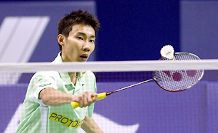 Lee Chong Wei of Malaysia returns the shuttle during the first round match against China's Qiu Yanbo in the men's singles of Li Ning China Open Badminton Super Series 2008 in Shanghai, China, Nov. 19, 2008. Lee won 2-1(8-21, 21-14, 21-16). [Xinhua]
