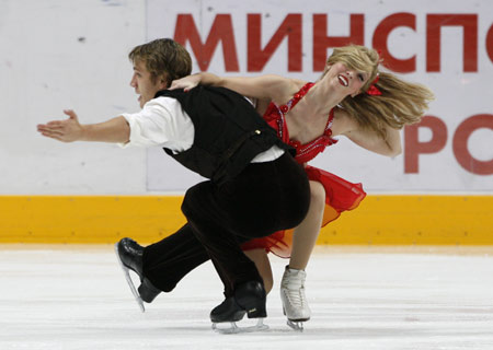 Katherine Copely and Deividas Stagniunas of Lithuania perform in the Ice Dancing Original Dance during the ISU Grand Prix of Figure Skating Cup of Russia in Moscow November 22, 2008.[Agencies]