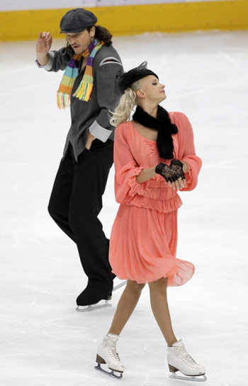 Russia's Oksana Domnina and Maxim Shabalin perform in the Ice Dancing Original Dance during the ISU Grand Prix of Figure Skating Cup of Russia in Moscow November 22, 2008.[Agencies]