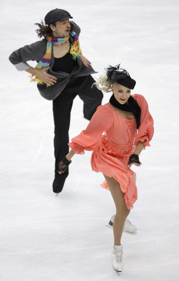 Russia's Oksana Domnina and Maxim Shabalin perform in the Ice Dancing Original Dance during the ISU Grand Prix of Figure Skating Cup of Russia in Moscow November 22, 2008.[Agencies]
