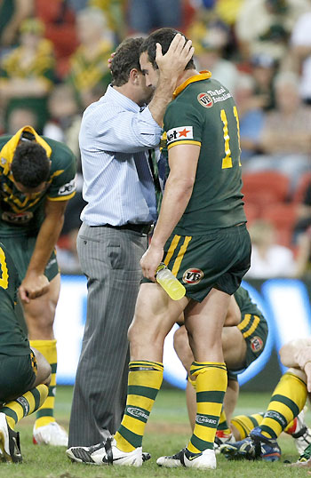 Stuart's manager John Fordham issued a statement Friday saying Stuart sent separate apologies to Klein and British referees official Stuart Cummings for his comments in a Brisbane hotel on Sunday. Describing his conduct as "inappropriate and offensive," Stuart said that the emotion that set in following Australia's 34-20 upset loss on November 22 had not subsided by the next morning. "Still on my mind were the disappointed faces of my players who had worked so hard during the tournament," Stuart said in the statement. Stuart is the subject of a Rugby League International Federation investigation after he allegedly made derogatory references to Klein, saying the English referee "cost us the World Cup" when he saw the officials in a hotel lobby. Australia was a hot favorite ahead of the final after scoring 180 points and conceded only 16 in the four matches leading up to the final, including a 30-6 win over New Zealand. The Kangaroos had won the previous six World Cups. |