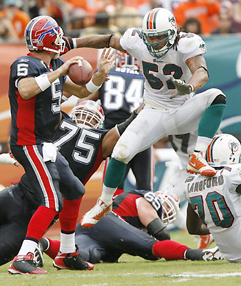 "It started bothering me at the start of the game," Edwards told reporters. "I was trying to work through it the first couple of series. ...Then at the end of the first half I was talking to the trainers and we made the call to just shut it down." J.P. Losman replaced Edwards and was sacked three times as the Bills (6-6) dropped into last place in the AFC East. The 49ers won for only the fourth time in 12 games. |