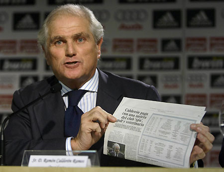Michel, a former Real Madrid hero as a player, resigned from his position late on Wednesday, but it was not until Thursday that he said why he was abandoning the club. The former player used the press to launch a stinging criticism of Calderon, attacking his lack of interest in the Real Madrid youth system as a source of players for the first team. "I have reached the conclusion that the Real Madrid president is not in the least bit interested in our work," Michel told sports paper Diario AS. "He criticised it in public and in private and the worst thing is that he doesn't even know what we are doing, because he has never wanted to know," he added. The Real Madrid youth system has struggled to produce players who have made the leap from the Real Madrid "B" team up to the first team in recent seasons. Ruben de la Red and defender Miguel Torres are the only two who have moved up in the past three years and De la Red had to spend the last season on loan at Getafe to prove himself. However, the youth system has produced a string of players who are succeeding in Spain's Primera Liga. Juan Mata had to move to Valencia to get first team football and recently received a call up to the Spain national squad. Likewise striker Alvaro Negredo has been a big success at Almeria, while Esteban Granero is a first team regular with Getafe. Perhaps the most successful Real Madrid export is Alvaro Arbeloa, who is now a regular with Premier League leaders Liverpool and a regular Spain international after making just a handful of appearances for Real Madrid. Meanwhile the club continues to sign foreign players with striker Klaas-Jan Huntelaar the most recent arrival. "I am not disappointed because Calderon doesn't like the work I have been doing. What he should have done is said so to my face or sacked me." "The reaction I get from the young players and their parents and the coaches who know what we are doing here, is a reason for me to leave proud of what I have done," said Michel. |