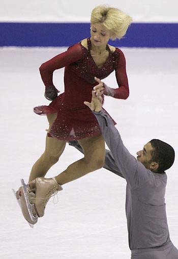 Aliona Savchenko and Robin Szolkowy compete during the senior pairs' free skating event at the ISU Grand Prix of Figure Skating Final in Goyang near Seoul December 13, 2008. [Agencies]