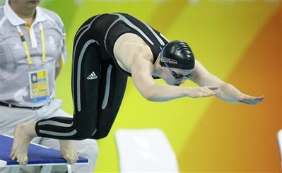 Australia's Grant Stoelwinder, who coaches 50 and 100 metre freestyle record holders Eamon Sullivan and Libby Trickett, said he estimated the suits were improving times by 0.3 seconds a lap and new developments would only give swimmers more of an edge. "The suits do make a difference and now we are getting to a point where some suits are starting to make a lot more of a difference," he was reported as saying in Monday's The Age newspaper. "I don't fool myself for one second as a coach and the trouble is as coaches some people think that swimmers are improving and you have to put it at about 0.3 (seconds) per 50 (metres) with the Speedo suit on and I think some of them are even more." World governing body FINA will hold a meeting with swimsuit developers, athletes and coaches in February to discuss the approval process for future suits. "We have to get some control for the credibility of our athletes, we have hugely talented athletes and the suits did make them swim unbelievably fast," Stoelwinder added. "Their credibility as athletes was being taken away because people were going 'oh, it is the suits'." Earlier this month, Swimming Australia asked FINA to ban approval for all new suits and the use of more than one suit in competition. |