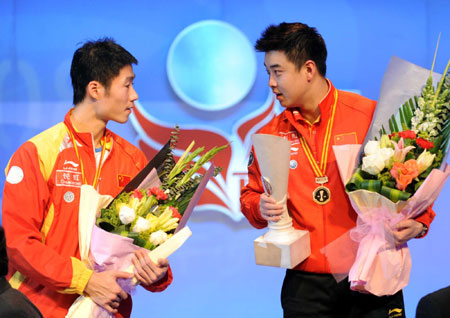 Wang Hao defeated former world No. 1 and three-time world champion Wang Liqin 11-5, 8-11, 11-2, 11-6, 11-7 late in the evening, while Zhang outclassed teammate Li Xiaoxia 12-10, 11-5, 11-5, 9-11, 11-4 earlier in the afternoon. "I've played against Wang Liqin for too many times," said Wang Hao after the final. "I just know him well as well as the way to beat him. Also, the luck is on my side." Wang Hao, 25, has kept a good form recently, reaching the final of every event he entered, while Wang Liqin was at a low ebb after losing to eventual winner Ma Lin in the semifinals at last August's Olympic Games.