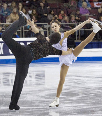 China's Hao Zhang and Dan Zhang compete in the Pairs Short Program during the ISU Four Continents Figure Skating Championships in Vancouver, British Columbia February 4, 2009. [Agencies]