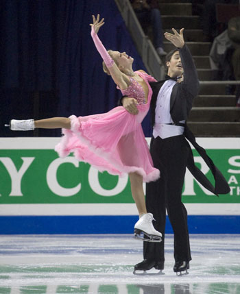 Canada's Kaitlyn Weaver and Andrew Poje compete in the Ice Dancing Compulsory during the ISU Four Continents Figure Skating Championships in Vancouver, British Columbia February 4, 2009. [Agencies]