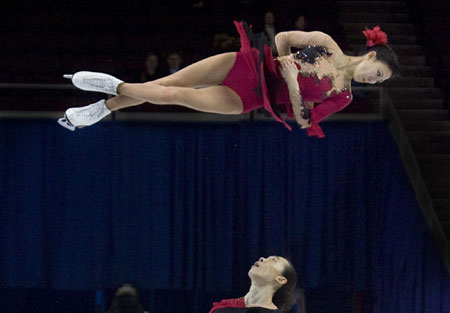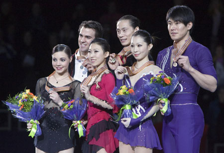 Now four-time winners of the event, Pang and Tong included a couple of huge lifts and throws to score 194.94 in the free skate. The only noticeable mistake for the 2006 world champions was being slightly out of sync on a side-by-side spin. "Before we came to this event we were very excited about it, especially knowing it's going to be the venue for the 2010 Winter Olympics," Tong said. "We tried to live up to the expectations and we were able to do that, and we're very happy with our performance."