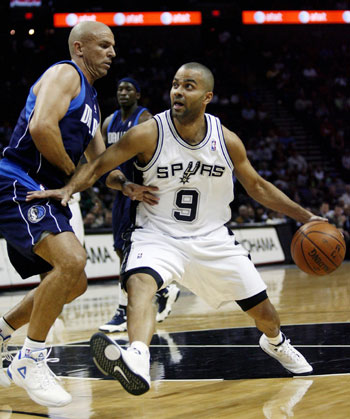 Updated: 2009-02-25 17:19 San Antonio Spurs Tony Parker (R) drives against Dallas Mavericks Jason Kidd during the first half of their NBA basketball game in San Antonio, Texas, February 24, 2009. [Agencies] |