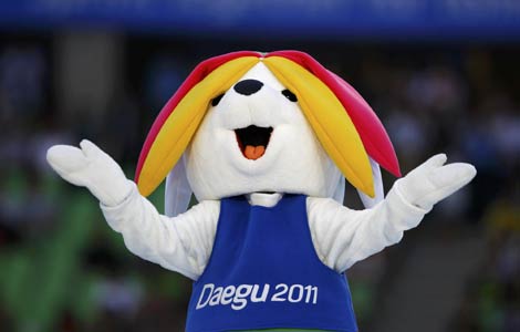 Usain Bolt of Jamaica walks without his shirt after being disqualified for a false start during the men's 100 metres final at the IAAF World Championships in Daegu August 28, 2011.??[Photo/Agencies] |
