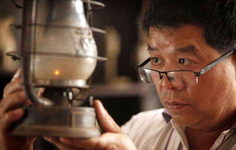 Greek veteran weighlifter Piros Dimas (R) and Chinese gymnast Li Ning light a cauldron with the Olympic Flame inside the marble Panathenaic stadium in Athens, May 17, 2012. [Photo/Agencies] |