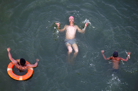 McLaren Mercedes driver Lewis Hamilton (right) of Britain sprays champagne after winning the United States Formula One Grand Prix at the Circuit of the Americas on Sunday in Austin, Texas. A bold passing maneuver at the end of a long straightway slipped Hamilton past Sebastian Vettel of Team Red Bull Racing allowing Hamilton to win the US Grand Prix in the first F1 race in the nation since 2007. [Photo/Agencies] |