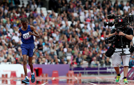 The London Paralympic main stadium shivered on Saturday as the 80,000 spectators applauded simultaneously to injured Djibouti runner Houssein Omar Hassan when he stumbled across the finish line in men's 1,500m-T46 heat.