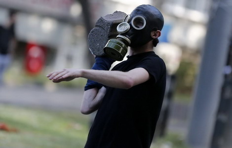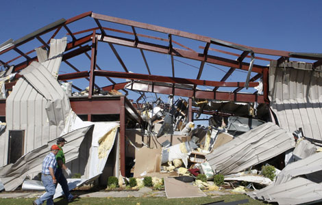 Rafael Nadal of Spain hits a return to Martin Klizan of Slovakia during their men's singles match at the French Open tennis tournament at the Roland Garros stadium in Paris May 31, 2013. [Photo/Agencies]