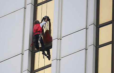 | Oscar Pistorius looks on during his trial at the high court in Pretoria April 7, 2014. Pistorius wept and retched into a bucket in court on Monday during graphic forensic testimony about the death of his girlfriend, Reeva Steenkamp, whom he is accused of murdering on Valentine's Day last year. [Photo/Agencies] |