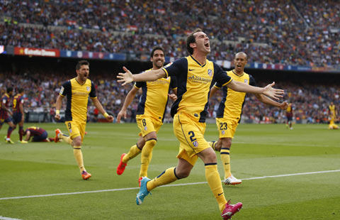But Godin's fierce header from Koke's corner allowed Atletico to finish the 38-game season with 90 points. Barcelona finished second on 87, the same points tally as Real Madrid after it closed the season with a 3-1 win over Espanyol.