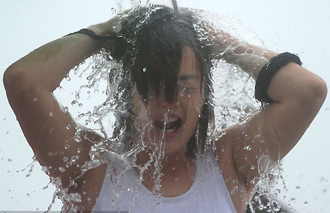 Maria Sharapova of Russia serves to Peng Shuai of China during the women's singles fourth round match at the Australian Open 2015 tennis tournament in Melbourne January 25, 2015. Second-seeded Russian Maria Sharapova cruised into the Australian Open quarter-finals after beating China's 21st seed Peng Shuai in straight sets. The 2008 Australian Open winner beat Peng 6-3, 6-0, setting up another Grand Slam meeting with Eugenie Bouchard.[Photo/Agencies] |