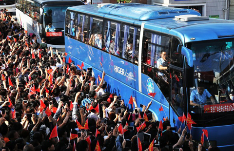 Cannavaro smiles after arriving at the Guangzhou Baiyun International Airport in Guangzhou, Nov 4, 2014. [Photo/IC]