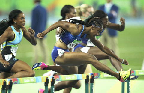 Brianna Rollins secured the women's 100m hurdles gold medal at the Rio Olympics as the United States claimed each of the top three places in Wednesday's final.
