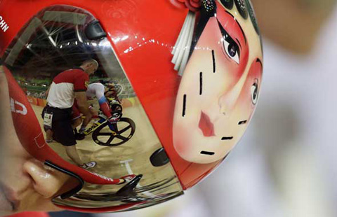 China claimed its first cycling Olympic gold on Friday after Gong Jinjie and Zhong Tianshi won the women's team sprint in the Rio Olympic Velodrome. As well as the athletes' performance, the race drew attention to the helmets of the duo, which were painted with the faces of famous Peking Opera characters.