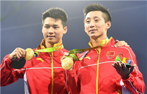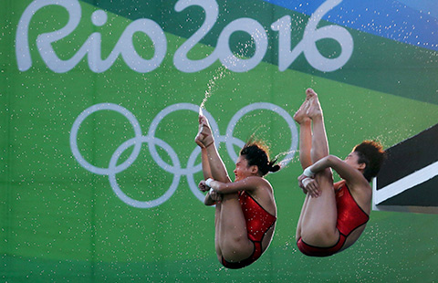 China's Chen Ruolin and Liu Huixia claimed gold in the women's synchronized 10 metre platform diving event at the Rio Games on Tuesday, with Malaysia and Canada respectively taking the silver and bronze medals as the venue's pool turned a bright green hue.