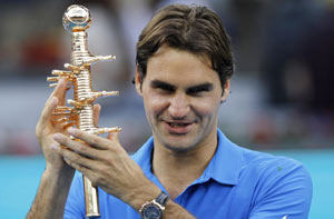 Roger Federer left a lasting impression on the Madrid Open's controversial blue claycourt when he ground out a thrilling 3-6 7-5 7-5 victory over Czech Tomas Berdych to match Rafa Nadal's record of 20 Masters titles.