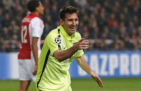 Barcelona forward Lionel Messi equalled the Champions League scoring record of 71 goals when he struck for the second time in the 76th minute of Wednesday's Group F match at Ajax Amsterdam.