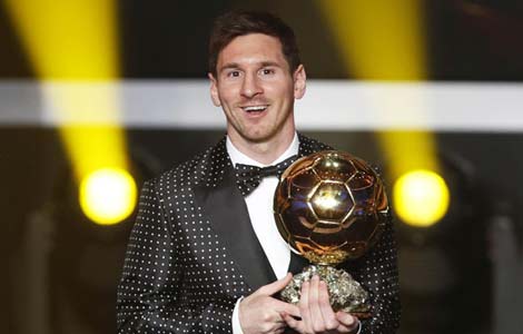 Argentina's Lionel Messi, still only 25, was named the world's best player for an unprecedented fourth year running on Monday.