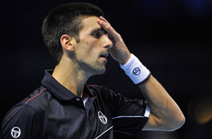 LONDON - World No 1 Novak Djokovic clawed his way to victory over Tomas Berdych in his opening match at the ATP World Tour Finals on Monday, but Andy Murray's prospects look bleak after a groin injury flared up in his shock defeat by David Ferrer.